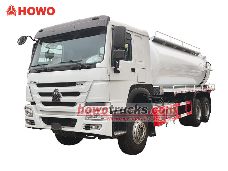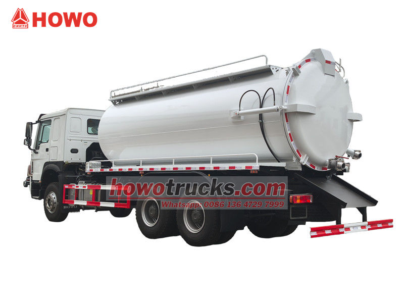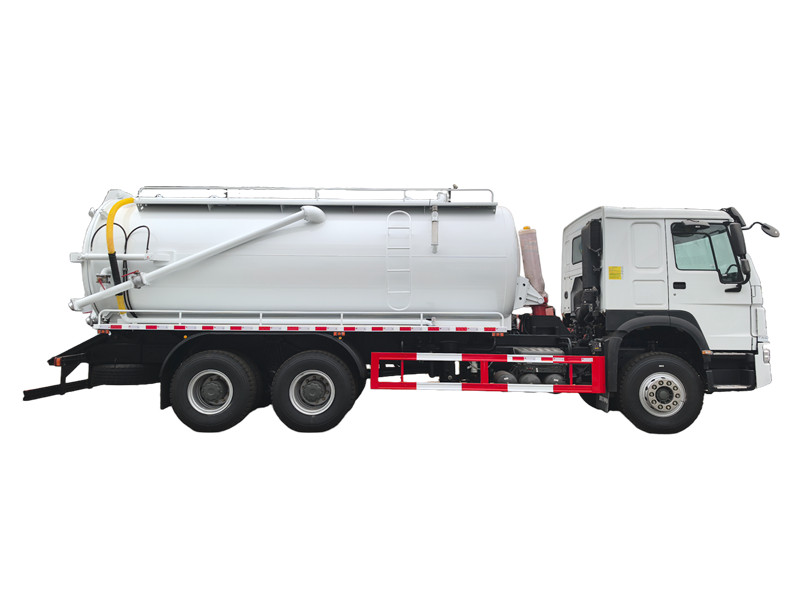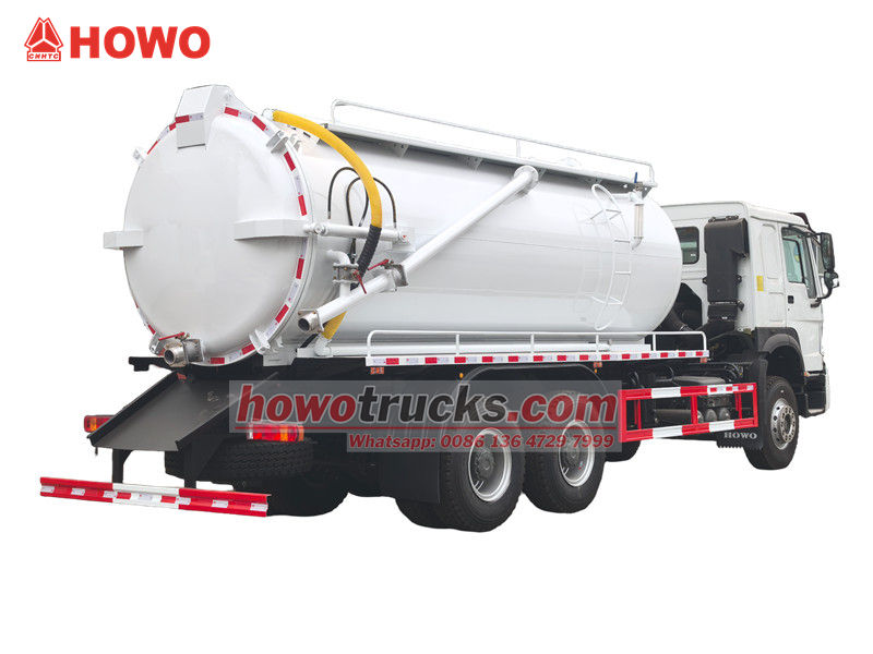 HOWO 15立方米真空吸污车(又称HOWO化粪池抽吸车、HOWO 15立方米真空吸污车、HOWO污泥真空泵罐车、HOWO十轮污水处理罐车等)用于收集、运输和排放污水、污泥、化粪池污泥、原油等液体以及小石子、砖块等固体物质。适用于清理下水道、化粪池、沟渠等。