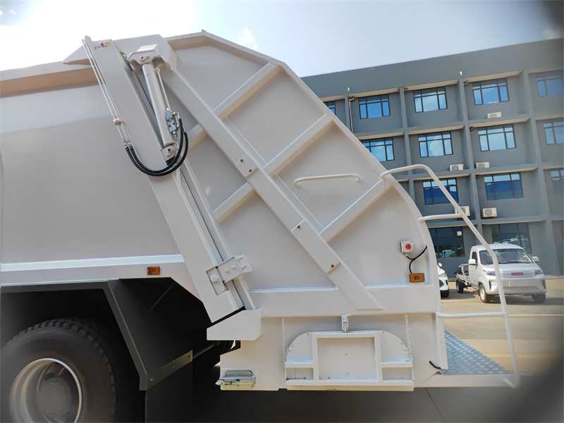 HOWO 6×4 22立方米垃圾压缩车通过液压驱动和电子控制技术的协同运用,实现了高效的装卸作业。装卸过程中,发动机动力经动力输出装置驱动液压泵。高压油通过多路阀分配至刮板油缸和滑台油缸。刮板随滑台展开下降,并旋转刮取和压缩垃圾。滑台上升,将垃圾推入容器。推铲在压缩力的作用下后退,实现连续装卸。卸卸过程中,装载机的提升油缸抬起车尾,推铲油缸水平推送垃圾,卸货后返回原位。