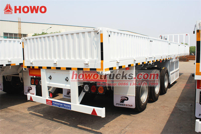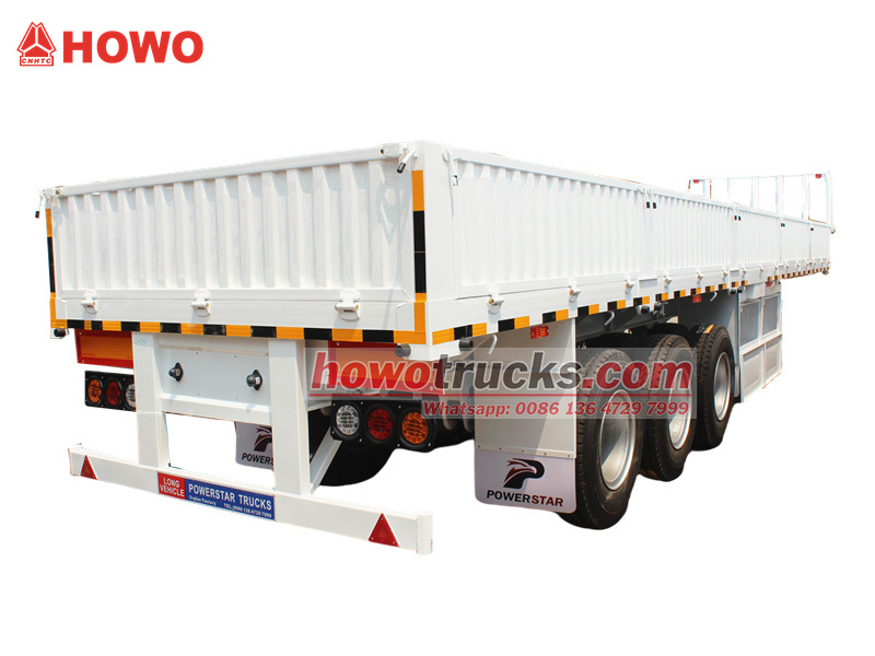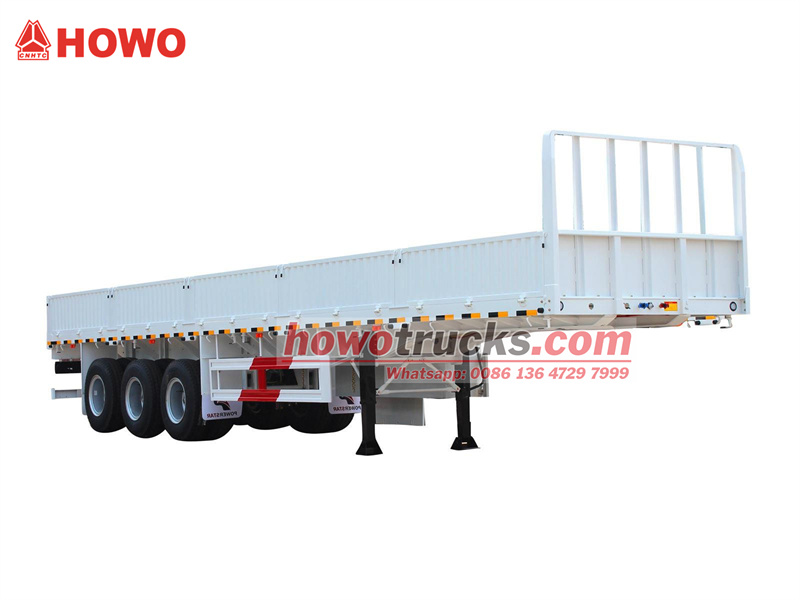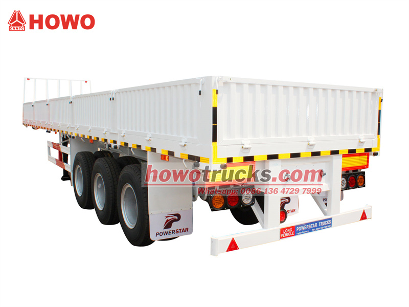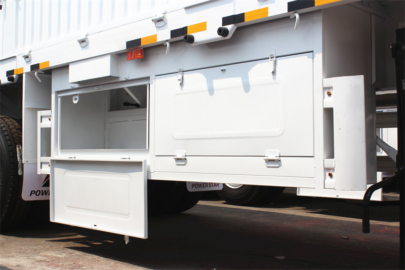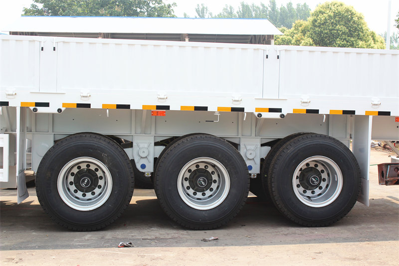 CS TRUCKS 三轴侧翻式半挂车额定载重高达 45 吨。它配备三个 13 吨重型车轴和十二条 12R22.5 轮胎,确保了车辆的强度和卓越的承载能力。侧翻式设计使其能够实现多方向快速装卸。结合 Q345B 高强度钢焊接底盘和灵活的悬挂系统,它是中长途散货和重型货物运输的高效实用之选。
