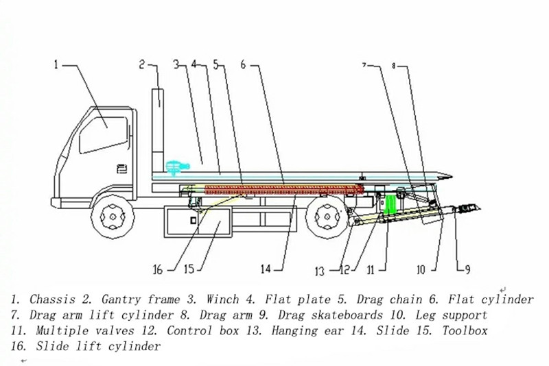 ●平板道路救援卡车上部结构的主要动力来源是液压系统。