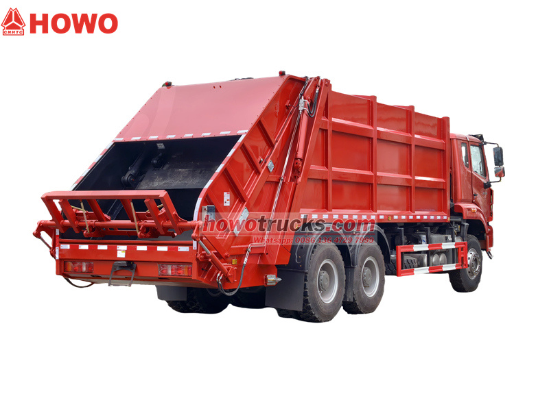 Howo垃圾压缩车采用先进的HW19710变速箱,搭配重型6×4驱动系统,确保在复杂路况下也能保持稳定高效运行。20立方米弧形罐体采用T420特种钢材制造,罐体厚度5毫米,并采用整体成型工艺。压缩比高达1:3.4,确保了垃圾压缩的极致效率。