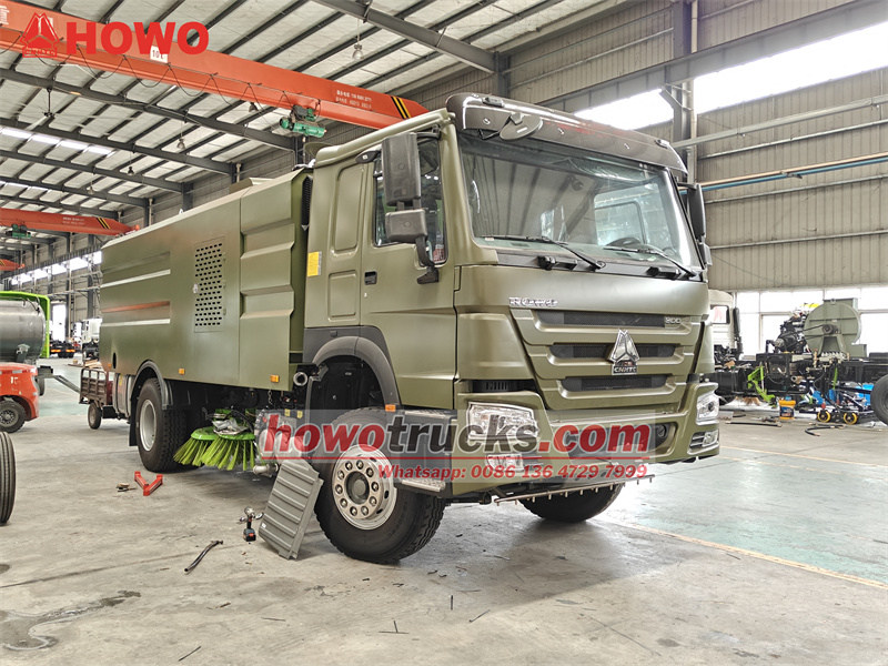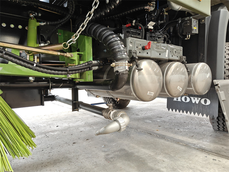 11500这Howo 12立方米车载式街道清扫车这是一款高效的环卫车辆,专为清洁和维护城市道路、广场、工业园区及其他场所而设计。它配备一个4000升碳钢水箱和一个8000升不锈钢内衬垃圾桶。清扫系统包含四组圆盘刷和宽吸盘,清扫宽度可达3.5米,高压冲洗宽度可达2.5米,最大清扫能力为60000平方米。³/h。该车辆采用德国高压泵、杭州低压水泵和维业鼓风机,结合多级喷洒抑尘,从而在作业过程中产生较少的粉尘。