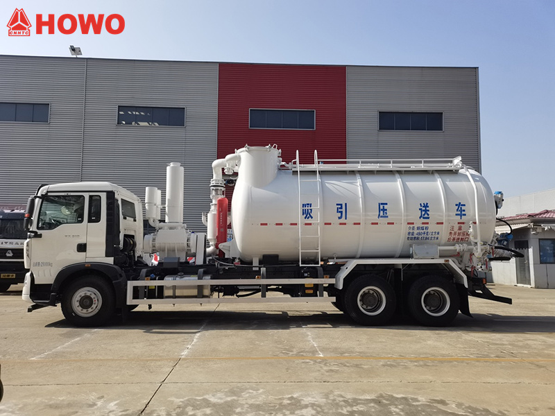 HOWO吸压输送车具有两个主要功能:负压吸入和正压排出。