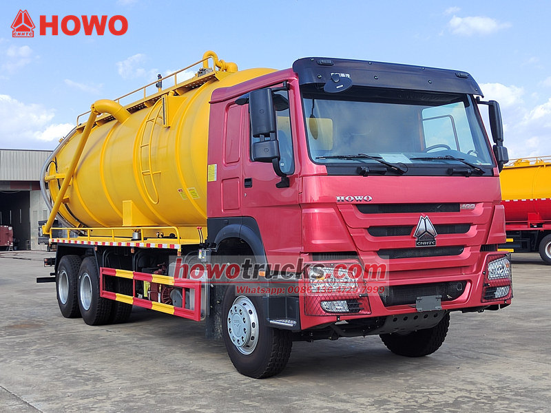 MORO pump, 6×6, RHD drive is optionalHOWO真空吸污车是一款高效环卫车辆,专为河流、污水池和城市管网的疏浚作业而设计。该车基于中国重汽HOWO 6×4重型底盘打造,配备HW76经典驾驶室、液压前倾机构和ZF转向系统。动力系统核心采用潍柴400马力柴油发动机,搭配10速HW19710变速箱和12R22.5钢丝轮胎,确保在复杂路况下也能可靠运行。