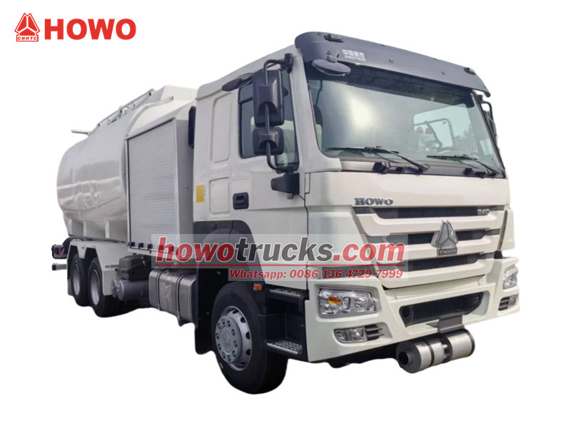 HOWO 20000L 飞机加油车是一款高效专业的航空地面保障车辆。它采用坚固耐用的 HOWO 6×4 重型底盘,搭载 400 马力潍柴发动机,性能强劲可靠。上部结构配备 20 立方米铝合金油箱,内置 1200-1500L/min 自吸式离心泵、高精度过滤系统以及支持压力加油和重力加油的双模式加油系统。智能控制系统、多层安全防护和防爆设计确保了安全高效的航空燃油输送,满足现代机场严苛的运行要求,是航空燃油加油作业的理想之选。