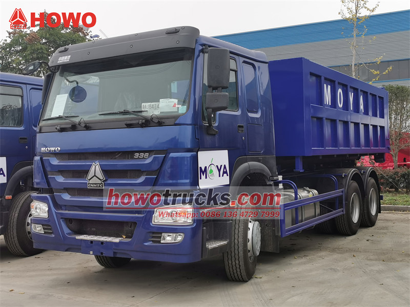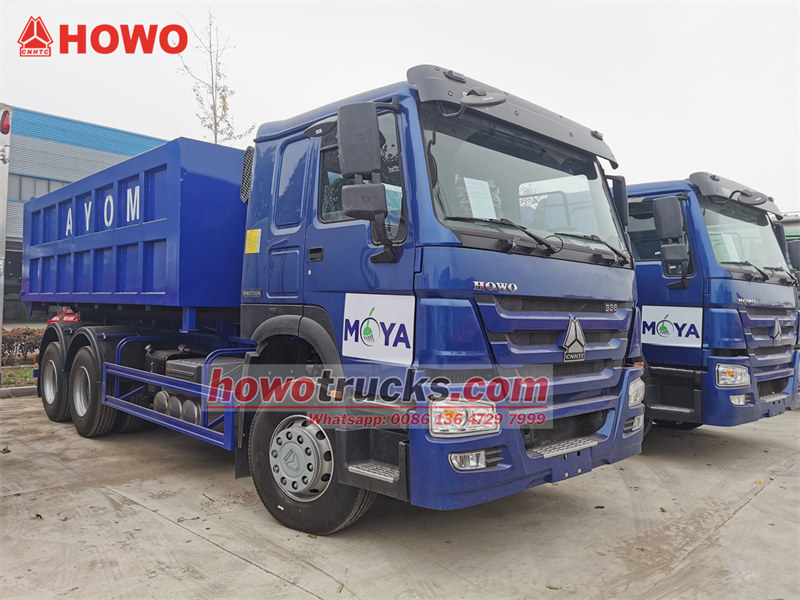 中国重汽豪沃重型钩臂式垃圾车出口非洲