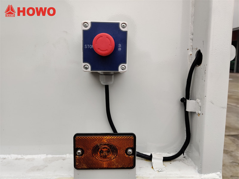 HOWO后装式尾门配有食品面板和把手,方便工人站立和垃圾收集。