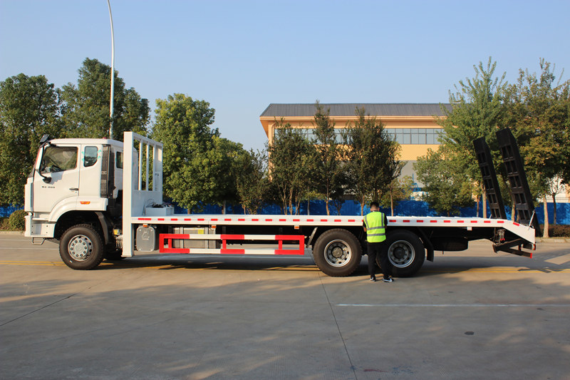 自卸车,又称平板运输车、自卸卡车、挖掘机运输车,是一种专门用于运输重型非拆卸式工程机械(例如挖掘机和装载机)的专用卡车。其主要特点包括液压伸缩式平板货厢以及液压支撑腿、绞车和坡道等自装卸设备。凭借其高承载底盘和防滑加固的货厢结构,自卸车能够在建筑工地、矿山和物流枢纽等场所安全高效地运输和独立装卸大型设备,从而减少对外部起重机械的依赖。以中国重汽豪沃25吨平板自卸车为例,该车配备潍柴380马力发动机和重型驱动桥,进一步提升了其专业的重型运输能力。其平板车厢可通过液压延伸至 3 米宽,并配备 25 吨前液压支腿和 8 吨绞车,即使在具有挑战性的工作条件下,也能提供出色的可靠性、承载性能和自装载效率。