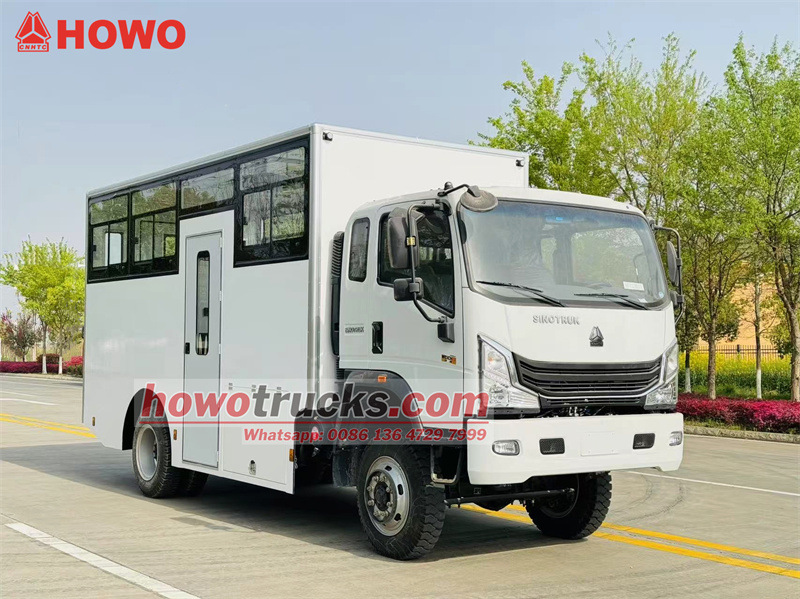 4200在军事运输和应急支援领域,性能卓越、适应性强的运兵车是确保任务顺利执行的关键。 Howo 4x4驱动士兵运输卡车 这是一款性能卓越的装备。它拥有极强的适应性,其全轮驱动系统搭配坚固的底盘,能够轻松应对崎岖山路、泥泞沼泽等复杂路况。潍柴发动机动力强劲,与高品质变速箱完美匹配,确保高效运输。车内配备两排符合人体工程学的长椅和空调,舒适宽敞。多窗设计提供宽广的视野,高强度车身抗压抗冲击,安全可靠。右侧单门和尾门双开门设计,方便人员快速上下车,并在紧急情况下迅速完成组装,非常便捷。