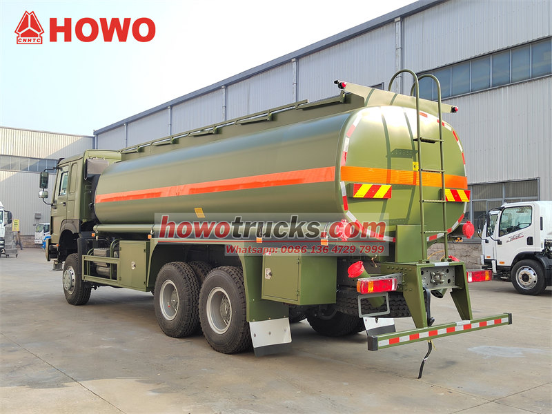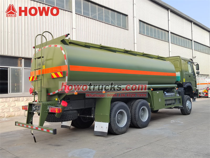 这 HOWO 6×6 油罐车 该油箱容量为18,000升,采用4毫米厚的碳钢制造,内部涂有防腐涂层,以延长使用寿命。油箱分为两个独立的隔间,可同时运输不同类型的燃料,从而提高作业灵活性。它配备一台60立方米/小时的大流量燃油泵和一台60升/分钟的Censtar燃油分配器,以及一根15米长的软管卷盘,可实现快速加油作业。凭借其卓越的越野性能和符合欧III排放标准,该车辆深受非洲客户的青睐,尤其适用于在油田和矿区等恶劣环境下进行燃料配送。