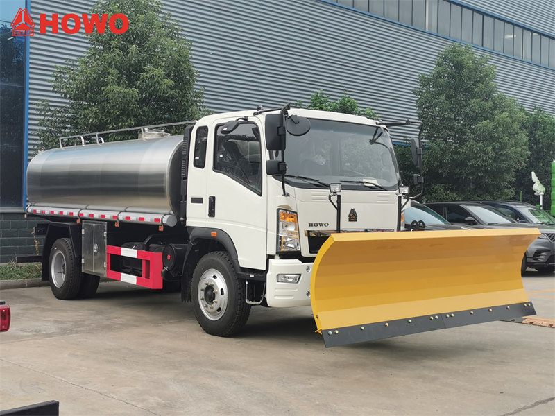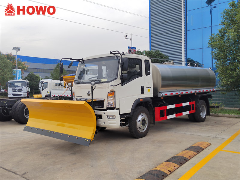 这 HOWO饮用水车 该设备创新性地配备了前置式雪犁,可实现±30°的横向偏转,并以30-50公里/小时的工作速度清除200毫米深的积雪,使其成为一款多功能解决方案。它不仅能高效满足日常饮用水运输需求,还能在冬季执行除雪任务,是市政环卫服务和极寒地区的理想之选。