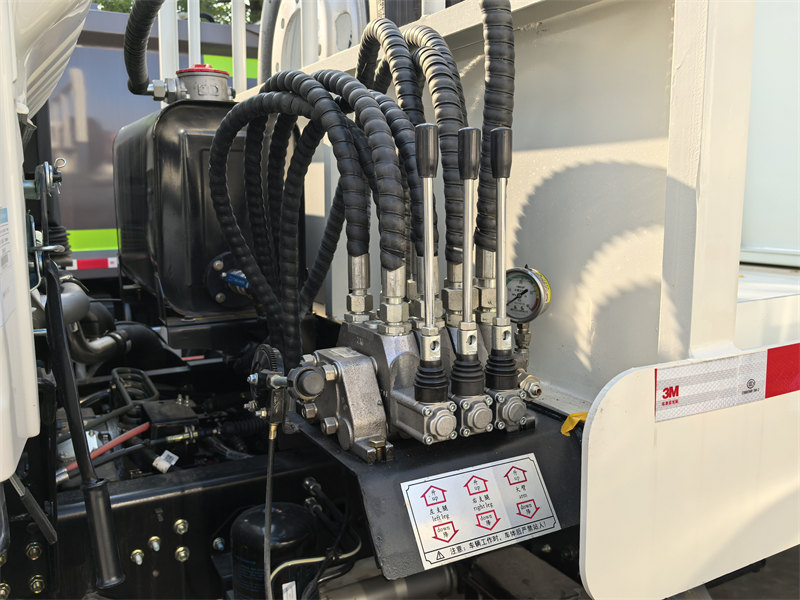 这款车的亮点在于其上部结构系统。 HOWO 翻斗式装载机 该设备配备一个8立方米的碳钢密封集装箱。通过优化的液压系统,实现了平稳可靠的起升作业。核心液压部件采用加厚液压缸和耐磨钢管,配合精密的多向阀控制,使摆臂能够在约60秒内完成一次装卸循环。独特的车身与集装箱分离式设计,支持一车多集装箱的循环作业模式。这显著提高了垃圾收集和转运的整体效率,使其成为城乡环卫工作的理想选择。