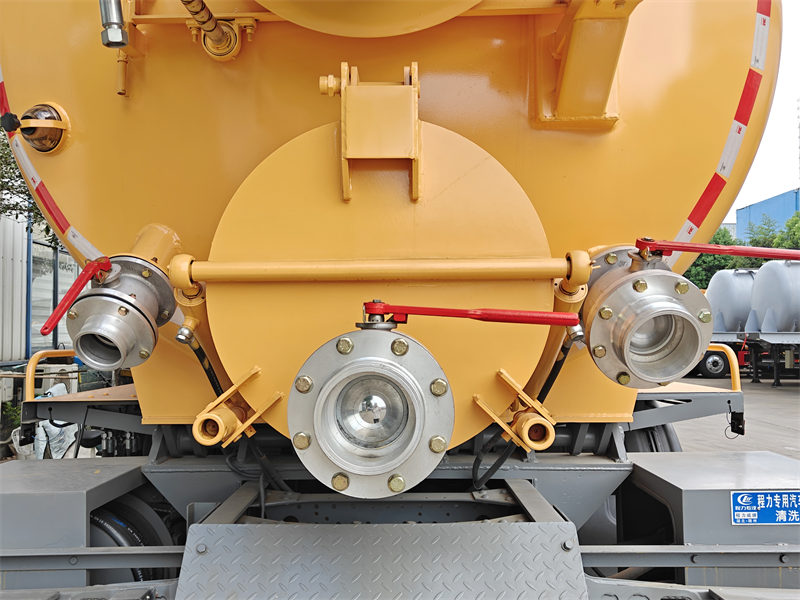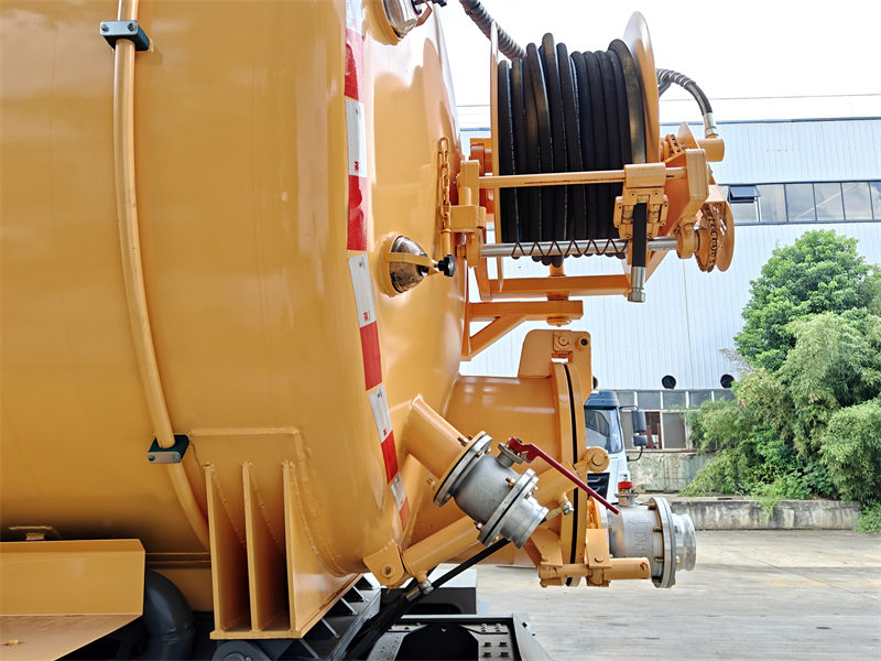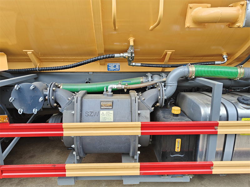 标准配置 | 配备有检修窗、排放阀、清洗装置、5米长的吸水管、油水分离器、溢流阀等。 气缸真空罐可通过液压装置提升至 40-45 度。后门可通过液压装置开启和关闭。 | |
