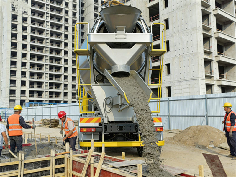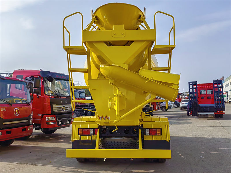 ▶ 混合: 运输过程中,搅拌车的滚筒持续旋转,以确保混凝土保持液态并均匀混合。滚筒的旋转由通常位于搅拌车前部的液压系统驱动。