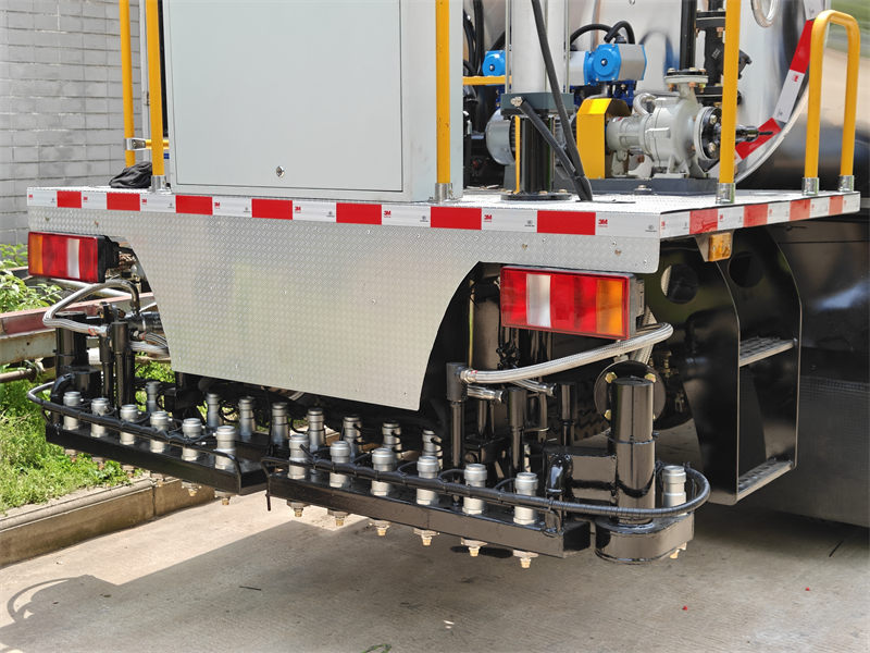♦ 智能控制: 36 个喷嘴可独立调节(0.3~3.5L/m²),以实现精确的流量控制,并适应不同粘度的沥青(乳化/改性沥青)。
