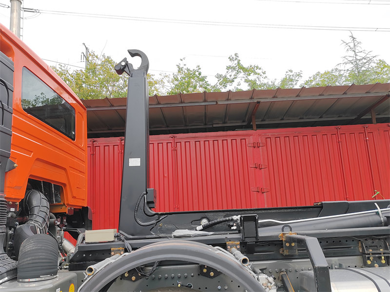 HW76 cabin, 6×6, 25 ton hook arm is optionalHOWO 20吨钩臂式垃圾车是一款基于重型卡车底盘的大型环卫车辆,配备液压钩臂系统,可实现垃圾桶的独立自动化装卸和自倾卸。该车采用HOWO NX 8×4底盘,搭载潍柴400马力发动机,总质量31,000公斤,设计用于处理15-20立方米的垃圾桶。其核心的20吨钩臂系统由液压机构控制,单次作业循环耗时不到45秒,在垃圾转运和多桶循环运输场景中展现出显著的效率优势。