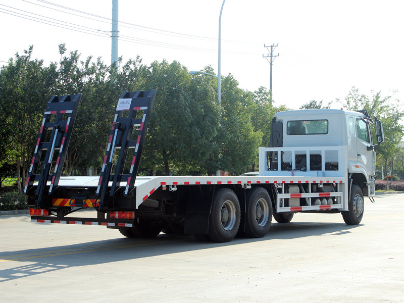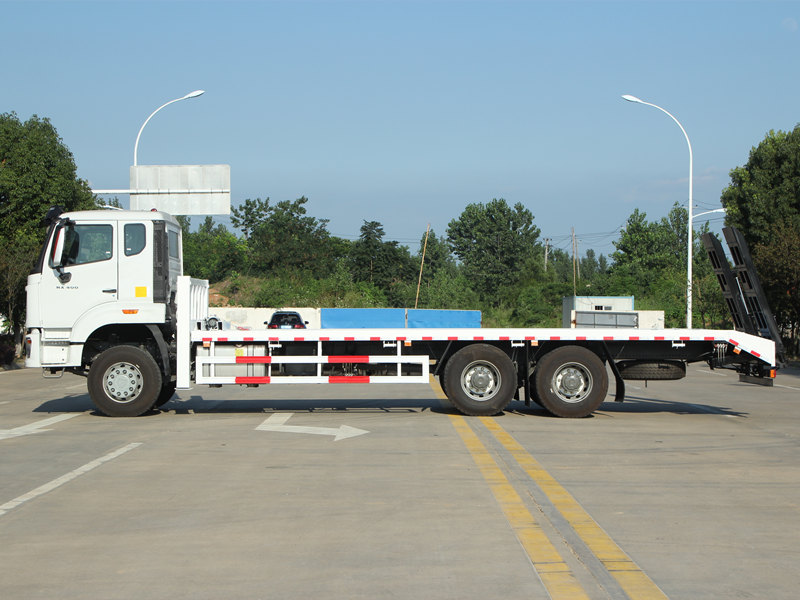 HOWO NX 自卸车是一款专为运输大型工程机械而设计的专业车辆。它基于 HOWO 6×4 驱动底盘打造,搭载 400 马力潍柴高压共轨发动机,动力强劲,高效节能,符合环保标准。该车配备 8600×2500 毫米防滑平板货厢、两台 20 吨前液压支腿和一台 4 吨液压绞盘,构成安全可靠的装卸系统,充分满足重型挖掘机等设备的运输和现场作业需求。