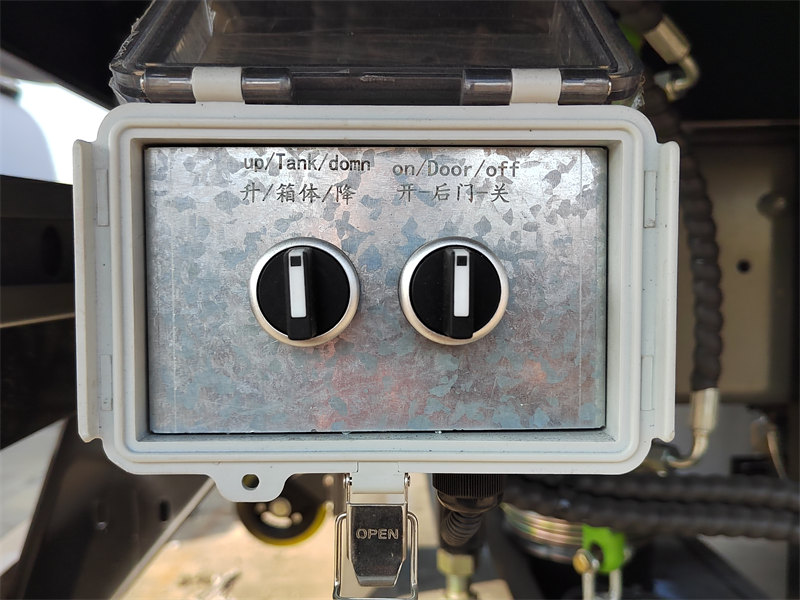 储罐后门配备液压销式锁定机构。该系统可实现一键式自动开启、关闭和锁定,确保密封严实,有效防止废物和污水泄漏。