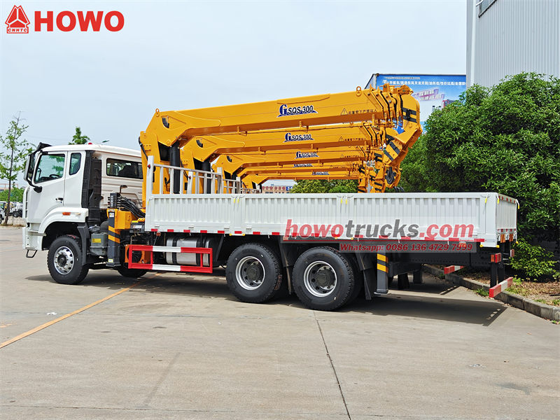 ♦ Howo重型20吨起重机卡车采用6x4驱动形式,后双轴驱动+前轴转向。.