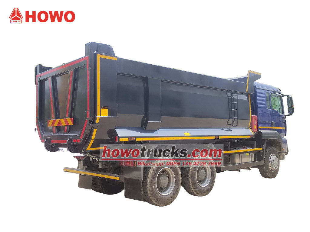 HOWO TX驾驶室自卸车是在HOWO TX驾驶室6x4底盘的基础上改装而成,轴距为3200+1400mm,配备380马力WP10.380E22柴油发动机、HW19710变速箱(10个前进挡,2个倒挡),以及由碳钢制成的自卸车厢,侧壁厚度为6mm,底部厚度为8mm。 5200x2300x1400mm,前顶提升,提升稳定,卸货干净快捷,后门可打开,车辆由驾驶员侧的控制阀控制,操作简便。