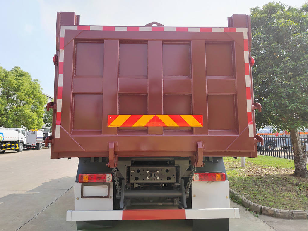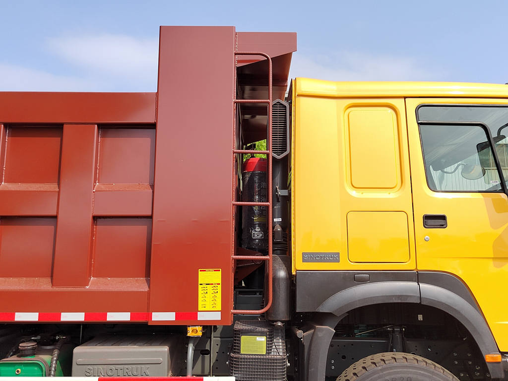 它配备了WP10.380E22 380马力柴油发动机和HW19710变速箱,轴距为4325+1350毫米,是一款坚固耐用、用途广泛的自卸车。车厢设计巧妙,通过液压升降装置,可实现快速自动倾卸货物,无论是沙子、煤炭还是泥土,都能高效卸载,大大节省人力和时间。
