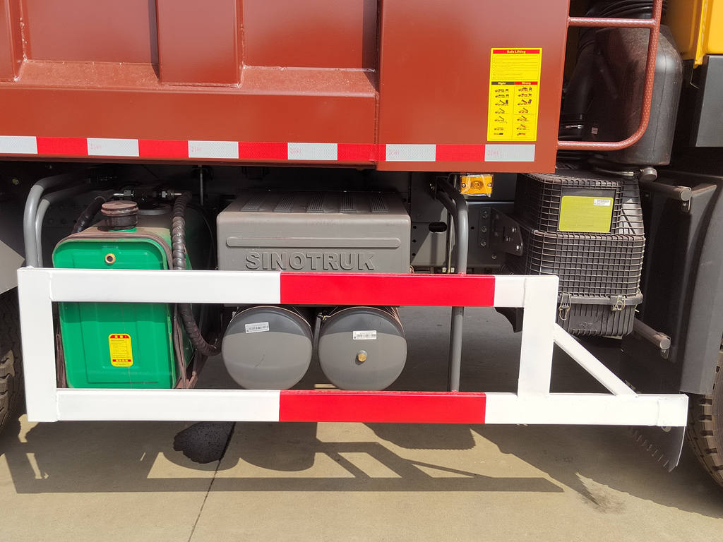 Howo工程自卸车主要由底盘、液压升降系统、货箱和控制系统组成。货箱采用高强度钢板焊接而成,前部铰接于车架,后部可通过液压开启或配备自动锁定钩机构,确保运输过程中密封严实。液压系统包括油泵、多级液压缸、控制阀和油箱。货箱的升降由驾驶室内的操纵杆控制。