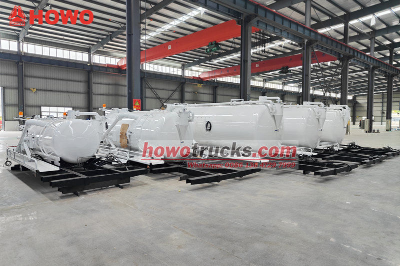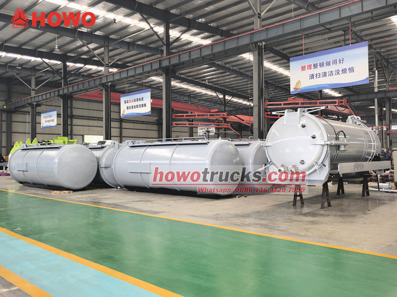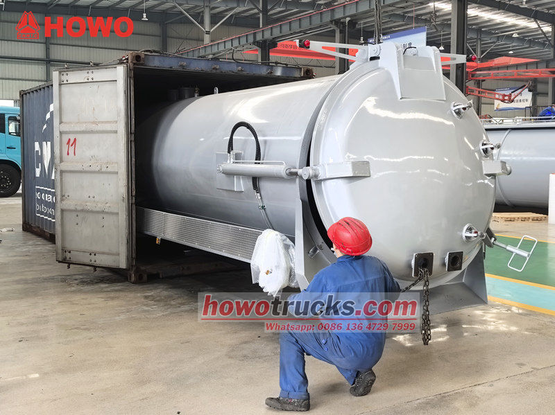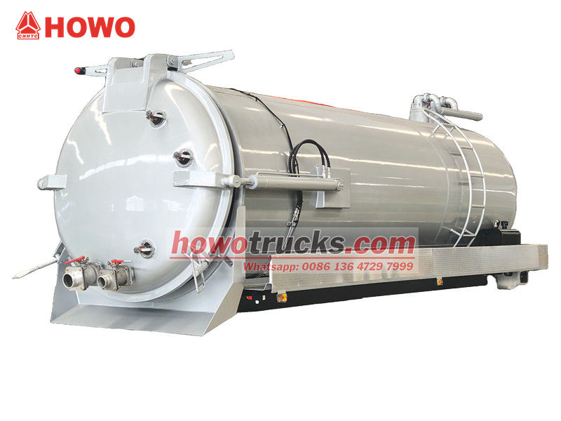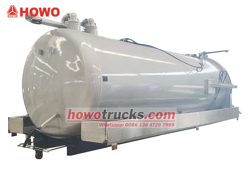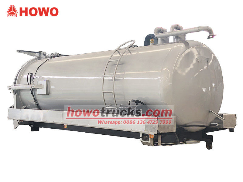 尼日利亚 12 立方米化粪池罐车上部车身(也称为 12,000 升沟渠吸污车真空吸污车套件、真空污水吸污车上部结构、12 立方米污水处理罐车上部车身套件、真空吸污车上部车身、12,000 升真空罐车上部车身、12 立方米真空吸污泵车套件) 该设备可安装在底盘上,用于清洁和收集污水、污泥、化粪池、原油等液体。适用于清理下水道、污水池、粪池、沟渠等。广泛应用于环境卫生领域。