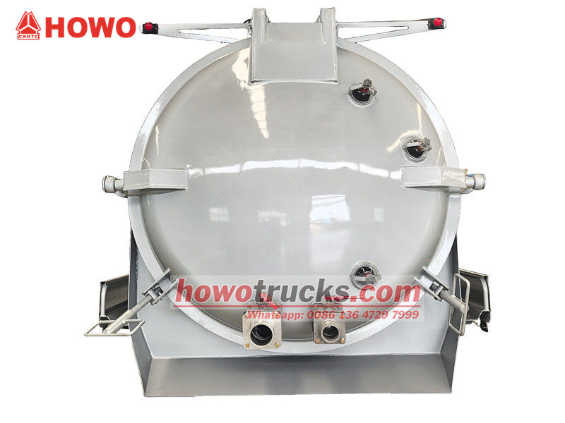 ●12立方米化粪池罐车上部主体的核心部件包括密封罐体、真空抽吸系统、控制装置和安全配件。