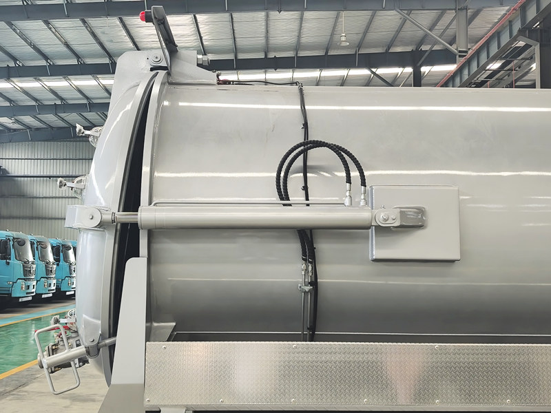 ●该车辆配备液压倾卸系统,可倾斜整个罐体进行彻底卸料和冲洗,减少残留物并保持内部清洁。整个过程密封进行,防止二次污染和异味扩散,确保清洁卫生的工作环境。