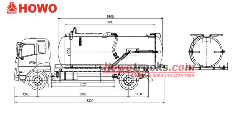 » Ⅱ. 产品参数12立方米化粪池罐车上半部分: