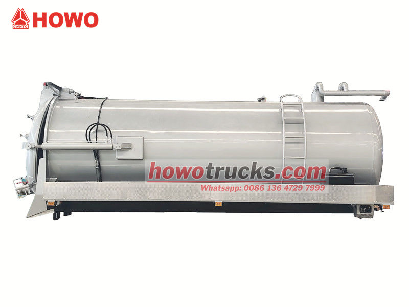 尼日利亚产12立方米化粪池清运车上部由密封罐体、真空泵、吸污管路、液位指示器和安全阀系统组成,吸力强劲,污水清除效率高。该设备利用真空负压原理,快速将化粪池污物吸入罐内,防止二次污染。其结构稳定,操作简便,广泛应用于化粪池、污水井、沉淀池等场所的清理和运输。