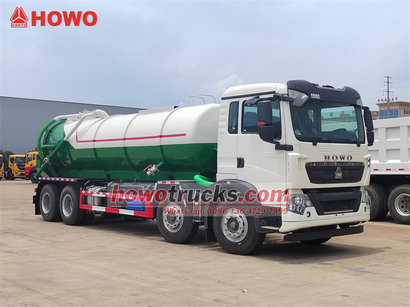 17500HOWO TX 25000L真空罐车是一款专为高效吸取、运输和处置液态废物和污泥而设计的专业环卫车辆。该车基于HOWO TX 8×4重型底盘打造,搭载350马力发动机和HW19710 10速变速箱,并配备400升大容量油箱。其上部结构包括一个25立方米的真空罐,采用6毫米厚优质碳钢制造,并集成SK-20水环真空泵,最大吸力可达20立方米/分钟,极限真空度可达8300帕,确保了强大的吸力和耐腐蚀性。